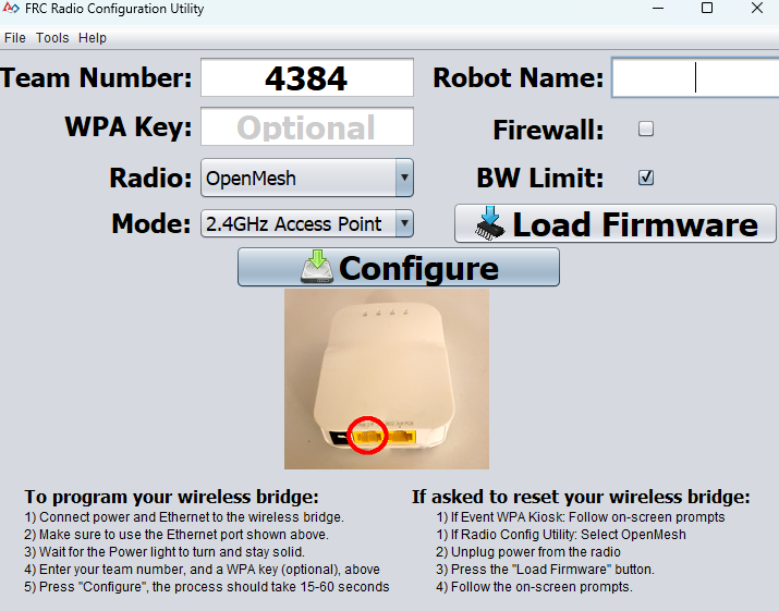 The OpenMesh OM5P Radio is no longer used by FRC starting in 2025, except in China and Taiwan. To program your radio, please visit the official programming guide.